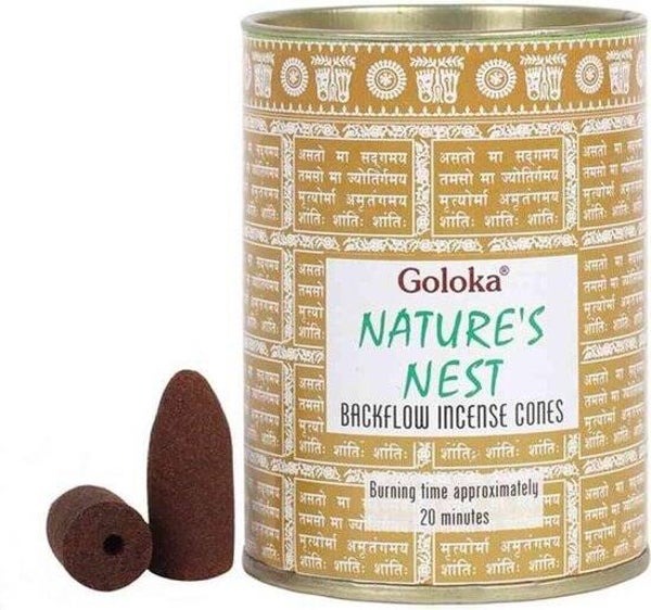 Voordeelverpakking van 6 blikjes, slechts € 1,50 per blikje!!!Goloka Backflow Wierook Kegels Nature’s Nest