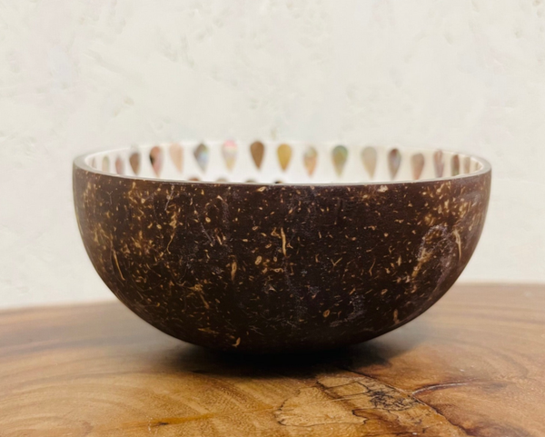 Kokosnoot kom met schelpen inleg druppelvorm
