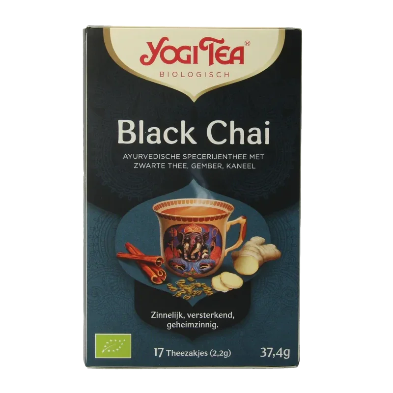 Zwarte thee* 31%, kaneel* 17%, gember* 17%, anijs* 10%, rooibos* 10%, geroosterde cichorei*, zwarte peper*, kruidnagel*, kaneelolie*, gemberolie* *gecontroleerde biologische teelt