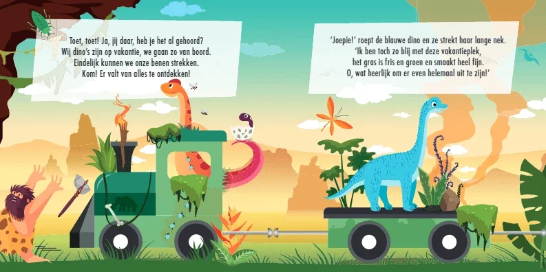 Ga je gezellig mee met de trein? Leg de stukjes van de puzzeltrein in de goede volgorde en neem iedereen mee in de trein. Een puzzel boordevol kleurige dino’s om samen mee te spelen! Dit leuke doosje bevat tien puzzelstukjes en een tien-pagina tellend boekje vol met leuke rijmpjes. Zowel doosje, boekje als puzzelstukjes zijn van stevig karton gemaakt en zijn voorzien van de mooiste kleurrijke illustraties.