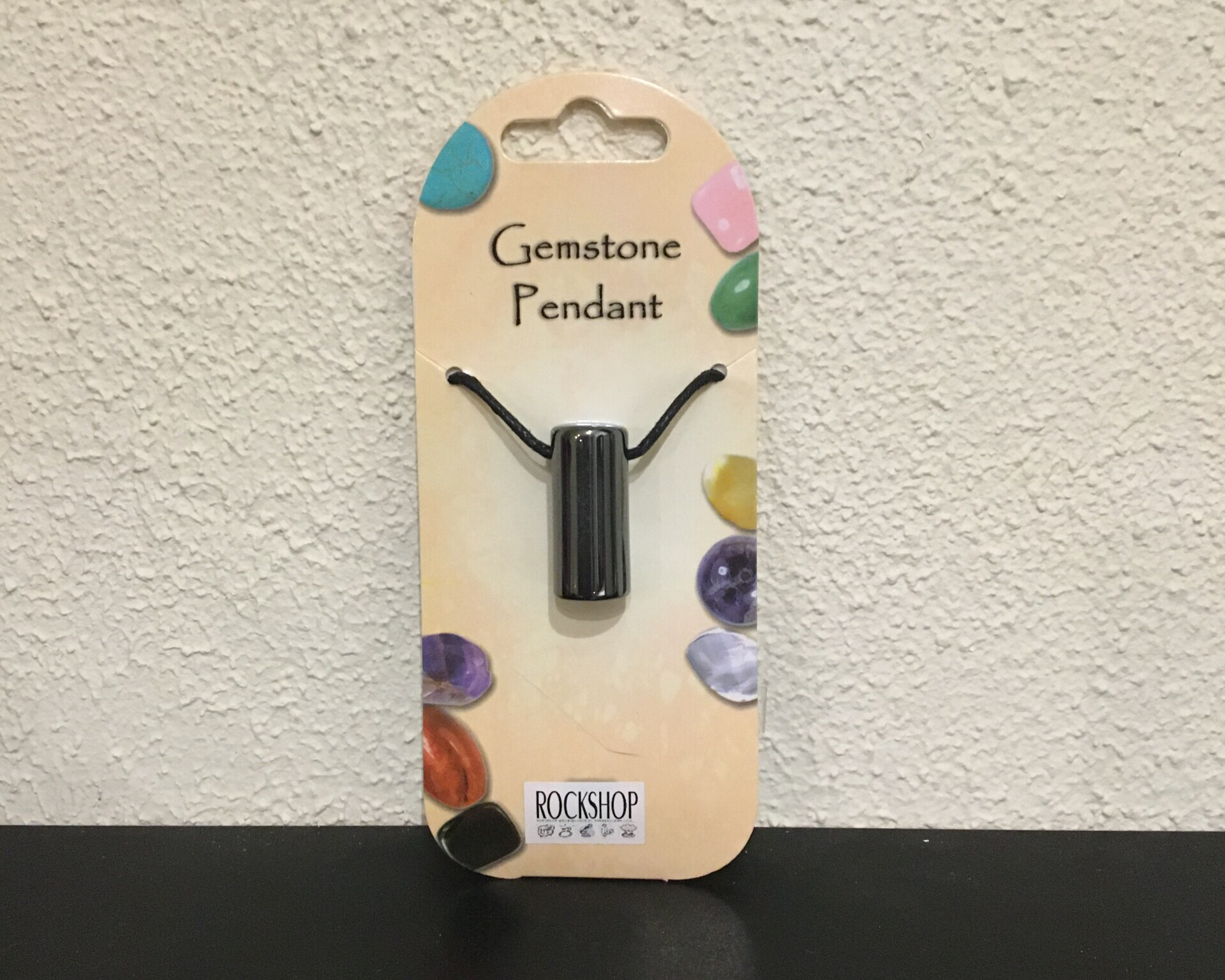 Gemstone hanger van Hematiet staafvormig, doorsnede elliptisch. Afmeting is circa 15x25x12 mm. De hanger wordt geleverd inclusief waskoord. U krijgt het exemplaar van de foto. Kleur kan in werkelijkheid afwijken van de foto.