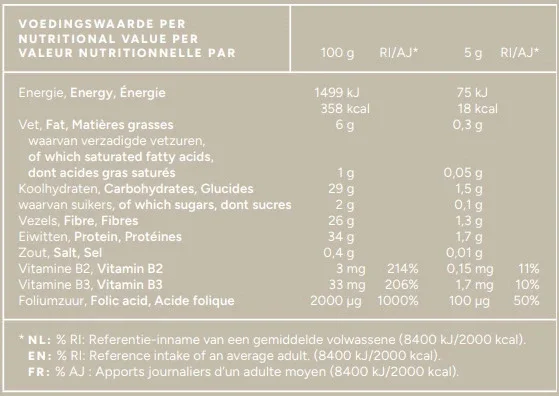 Edelgistvlokken zo min mogelijk verhitten. Geeft een hartige smaak aan pasta, gegrilde groenten en salades ook als vervanger van kaas. Ook lekker in muesli, smoothie of juices.