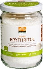 Erythritol is een natuurlijke zoetstof die van nature voorkomt in sommige paddenstoelen, vruchten (o.a. watermeloen, druif en peer) en gefermenteerde voeding zoals wijn, kaas en soja-saus. Erythritol is de enige natuurlijke polyol en is geproduceerd middels natuurlijke fermentatie en heeft ongeveer 70% van de zoetkracht van gewone suiker. Erythritol is een ideale vervanger van riet-, bietsuiker of andere zoetmiddelen. Geeft een heerlijke zoete smaak aan smoothies, yoghurt, tussendoortjes, dranken, ijs en andere (na)gerechten. Bevat geen calorieën, het wordt alleen opgenomen in de dunne darm en via de urinewegen uitgescheiden en hierdoor worden de calorieën van erythritol niet opgenomen. Erythritol beïnvloedt de bloedsuikerspiegel niet en is daardoor een goed alternatief voor diabetici.